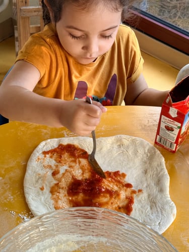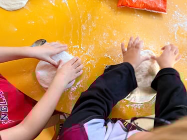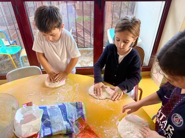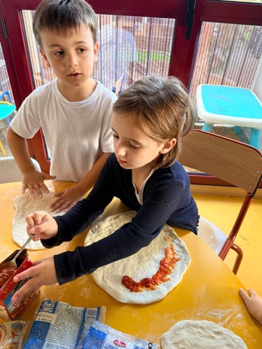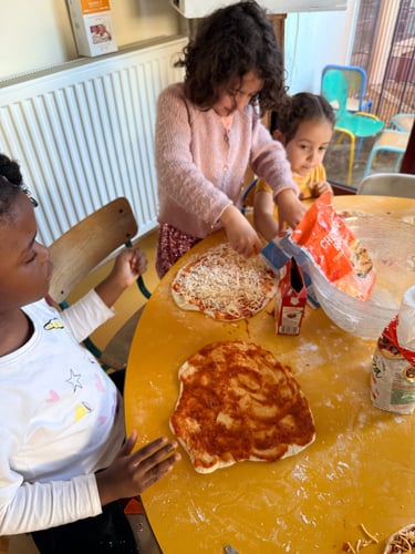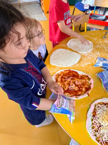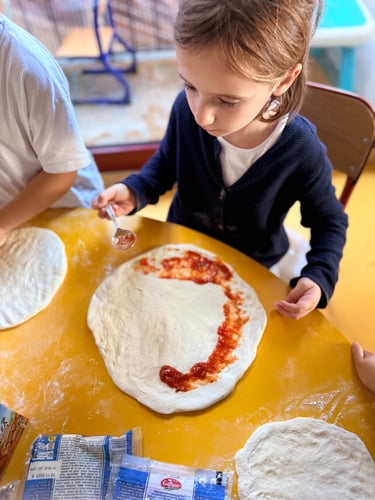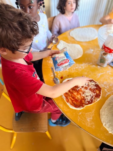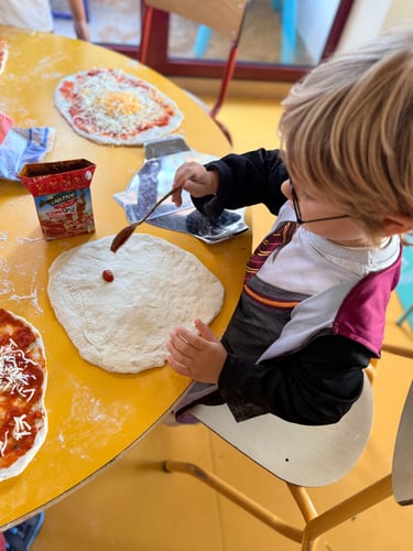 Les enfants se sont transformés en petits pizzaiolos le temps d’un atelier. Ils ont préparé une pâte maison, puis chacun a réalisé sa propre pizza margherita.