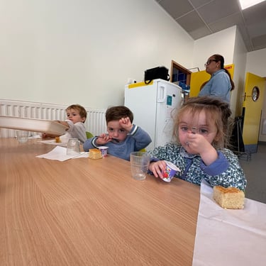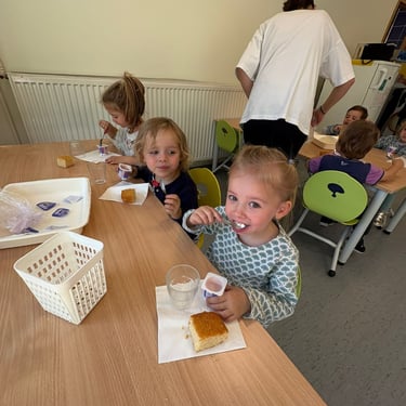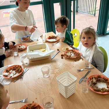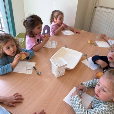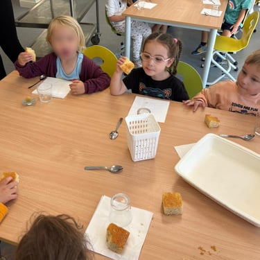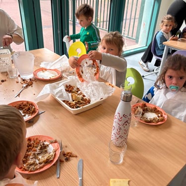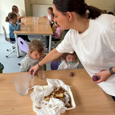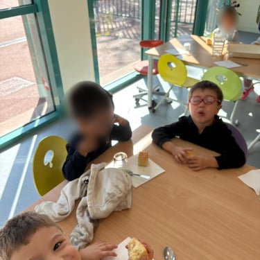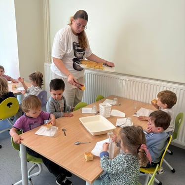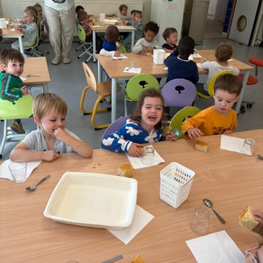 L’après-midi, place à l’énergie ! Dans la cour, les rires et les jeux ont rythmé le réveil. Pour terminer la journée en douceur, nous avons partagé le goûter avant l’arrivée des parents.