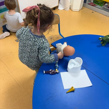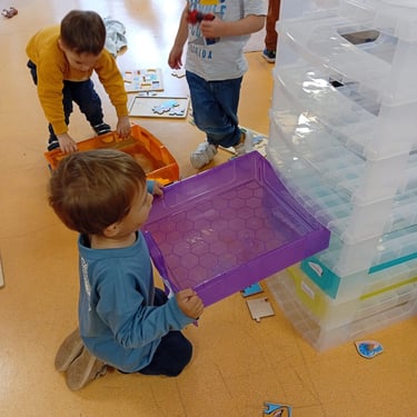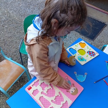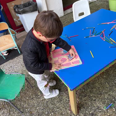 Ce matin, certains enfants se sont plongés dans la magie du sel arc-en-ciel. Entre couleurs vives et créativité, leurs pots se sont remplis de jolies couches colorées. Pendant ce temps, d’autres ont préféré profiter des jeux libres, chacun suivant ses envies.