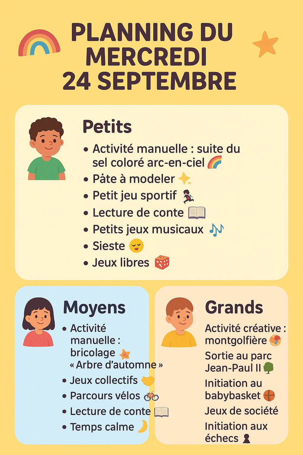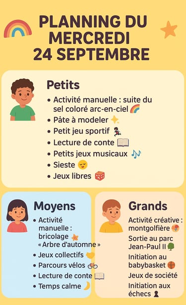 Une journée variée où s’enchaînent ateliers, jeux et temps de détente, pour permettre à chacun de s’épanouir